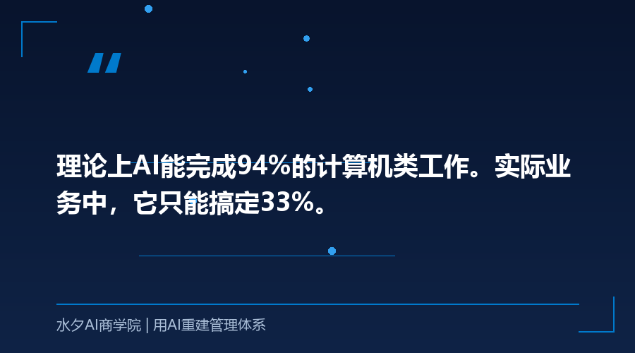 理论上,AI能完成94%的计算机类工作。实际业务中,它只能搞定33%。