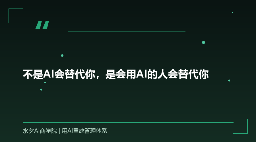 花一天时间,把你的业务流程摊开来看。哪些是AI能干的,哪些是人必须干的。这就是你的AI化起点。